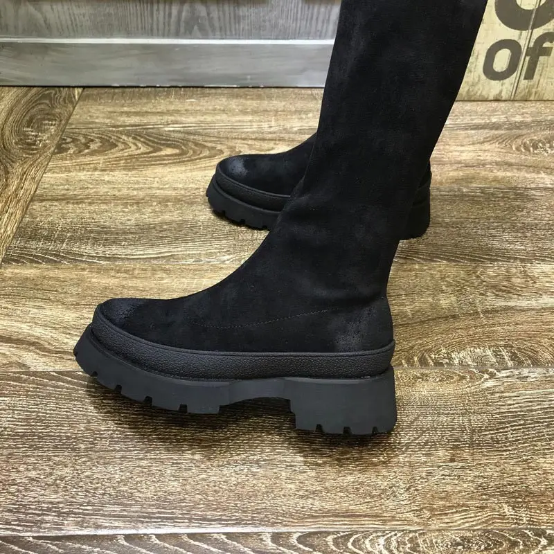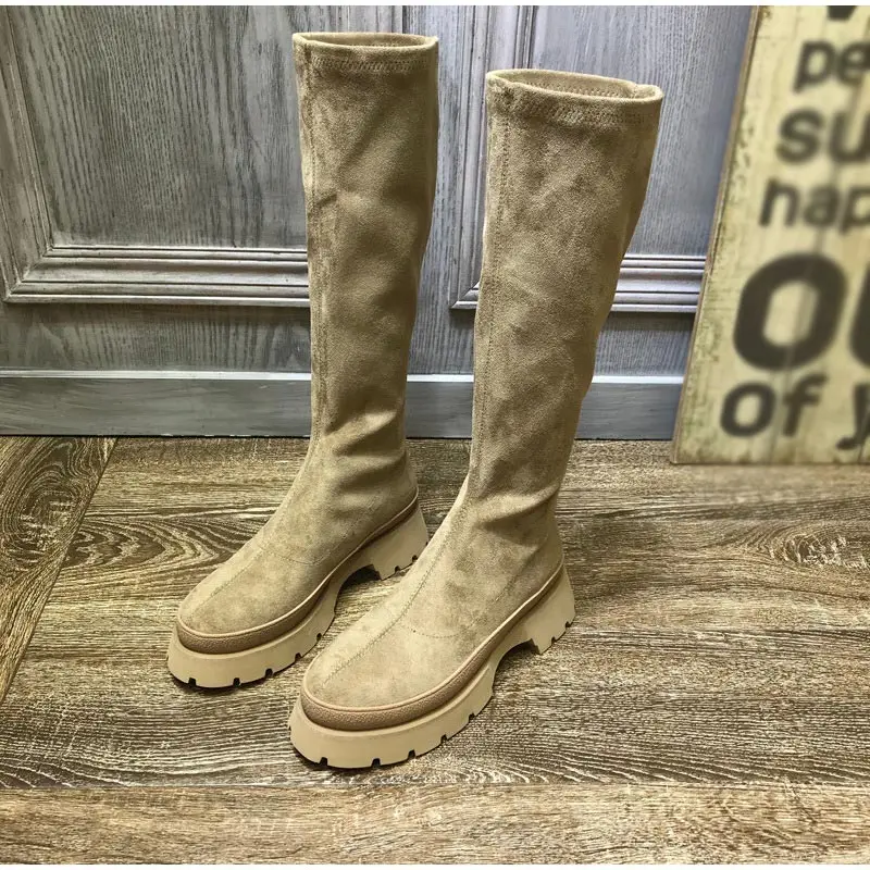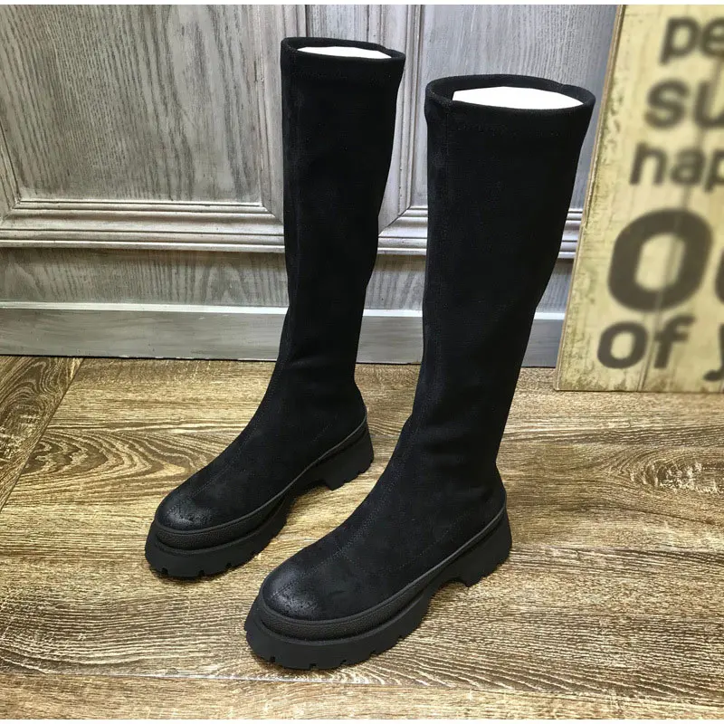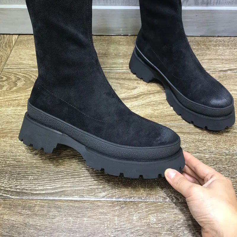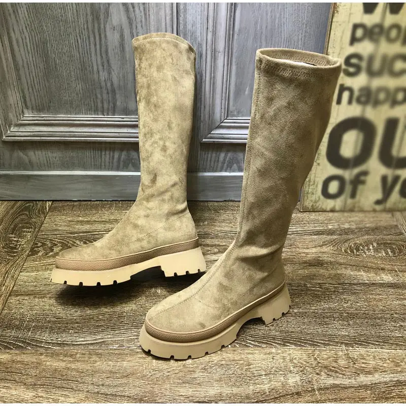 Женские высокие сапоги, новые сапоги до колена без шнуровки, на платформе, с бархатной подкладкой, эластичные сапоги, женские уличные винтажные длинные сапоги для осени и зимы