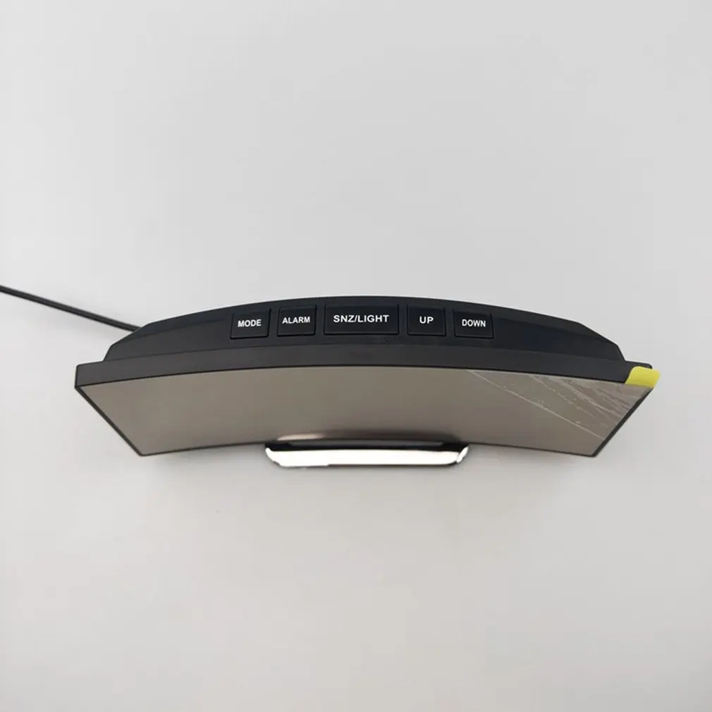 Цифровой будильник, светодиодные зеркальные часы с изогнутой поверхностью, электронные настольные часы с большим экраном, Настольный будильник для украшения дома