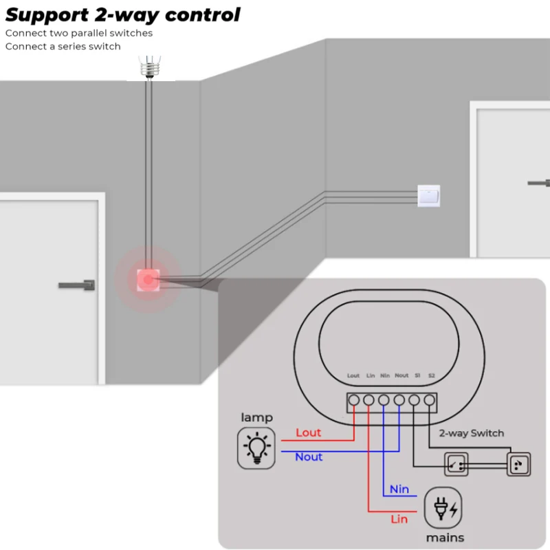 【Поддержка двухстороннего управления 】 может использоваться на двух переключателях для управления лампочкой на светильник. Может использоваться с двумя предыдущими переключателями.