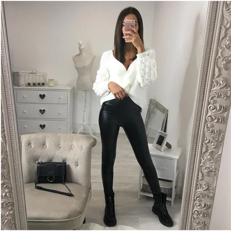 Женские эластичные леггинсы, кожаные леггинсы, женские тонкие эласт...