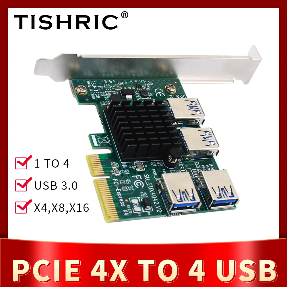 Адаптер TISHRIC PCIE 4X на 4 Usb 3,0 Hub 4x 8x 16x Pcie, переходник...