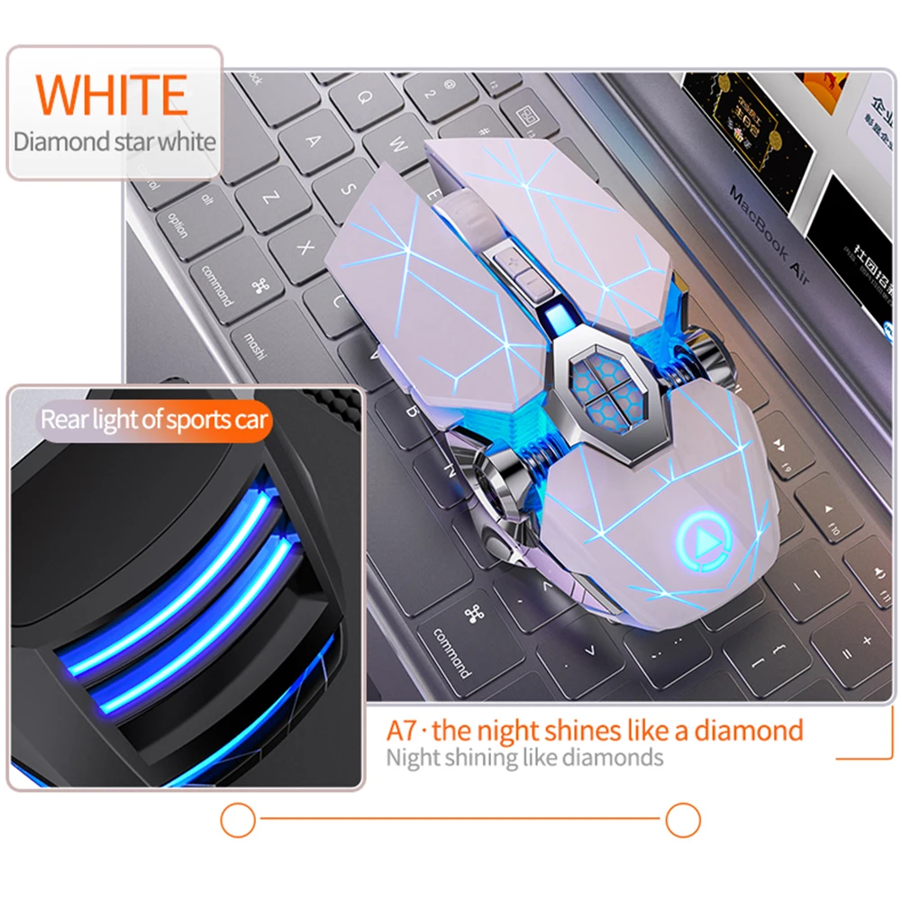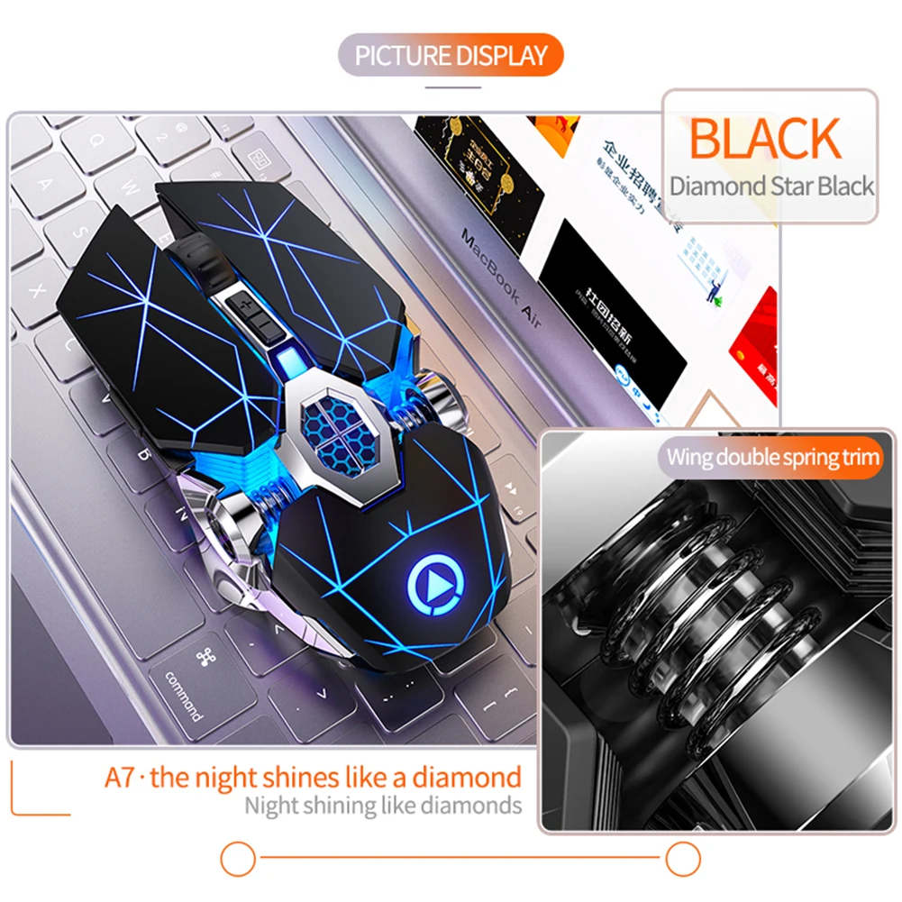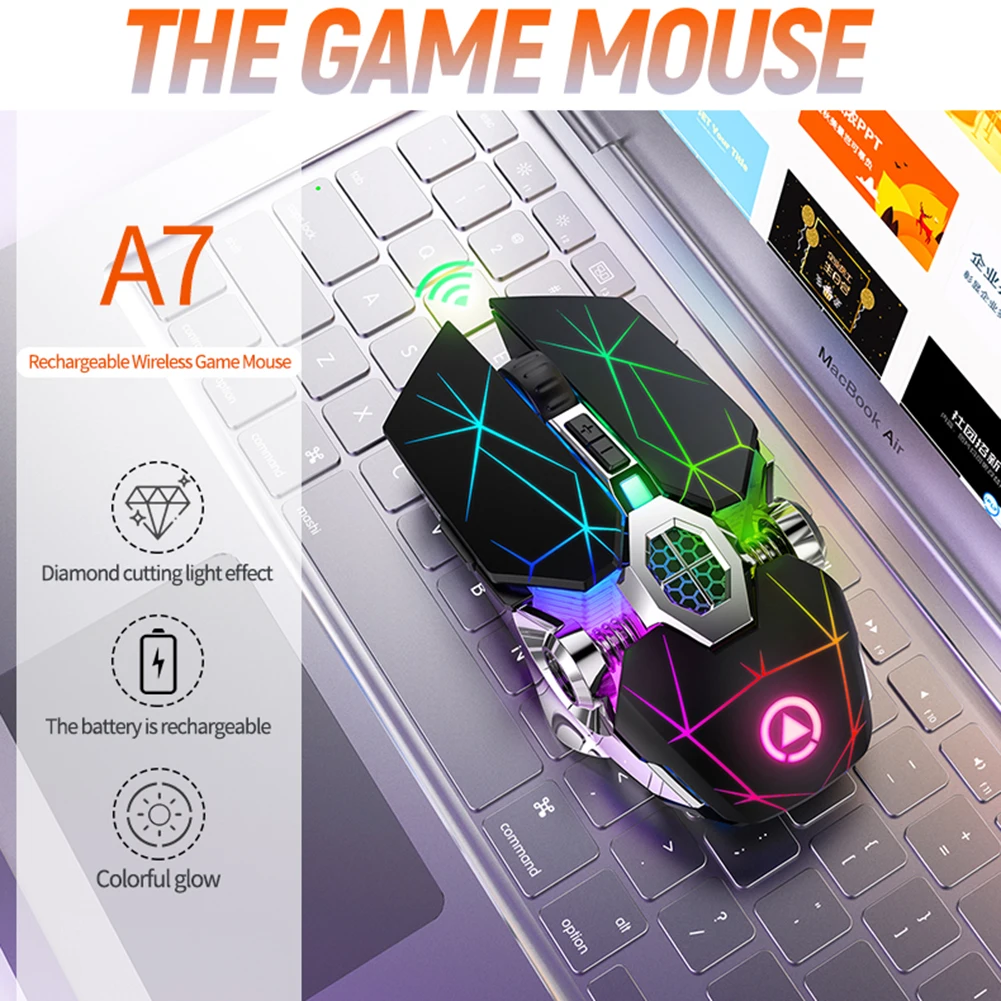 Беспроводная оптическая игровая мышь A7, 7 кнопок, 1600DPI, USB, бесшумная Механическая мышь, геймерская мышь Rgb для ПК, ноутбука