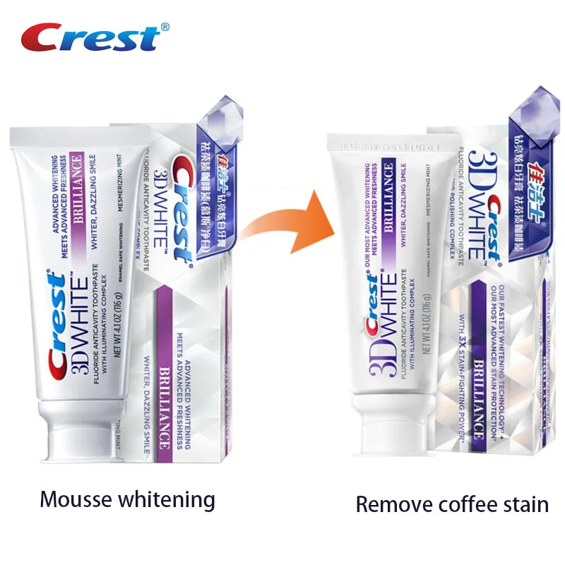 Crest 3D белая зубная паста Brilliance + Улучшенная защита от пятен яркая перечная мята отбеливание зубов Зубная паста выдавливатель 1 трубка