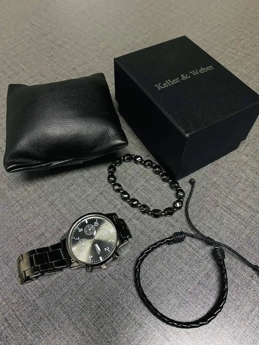Роскошные черные Подарочные Наборы для мужчин, мужские часы, лучший бренд, ручная работа, бисер, регулируемый плетеный браслет, подарочный набор для парня, мужа