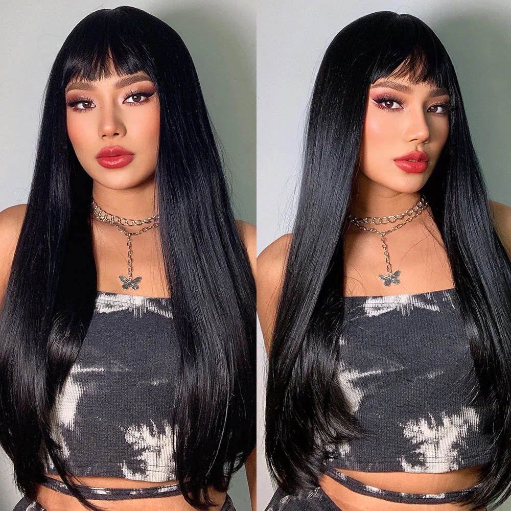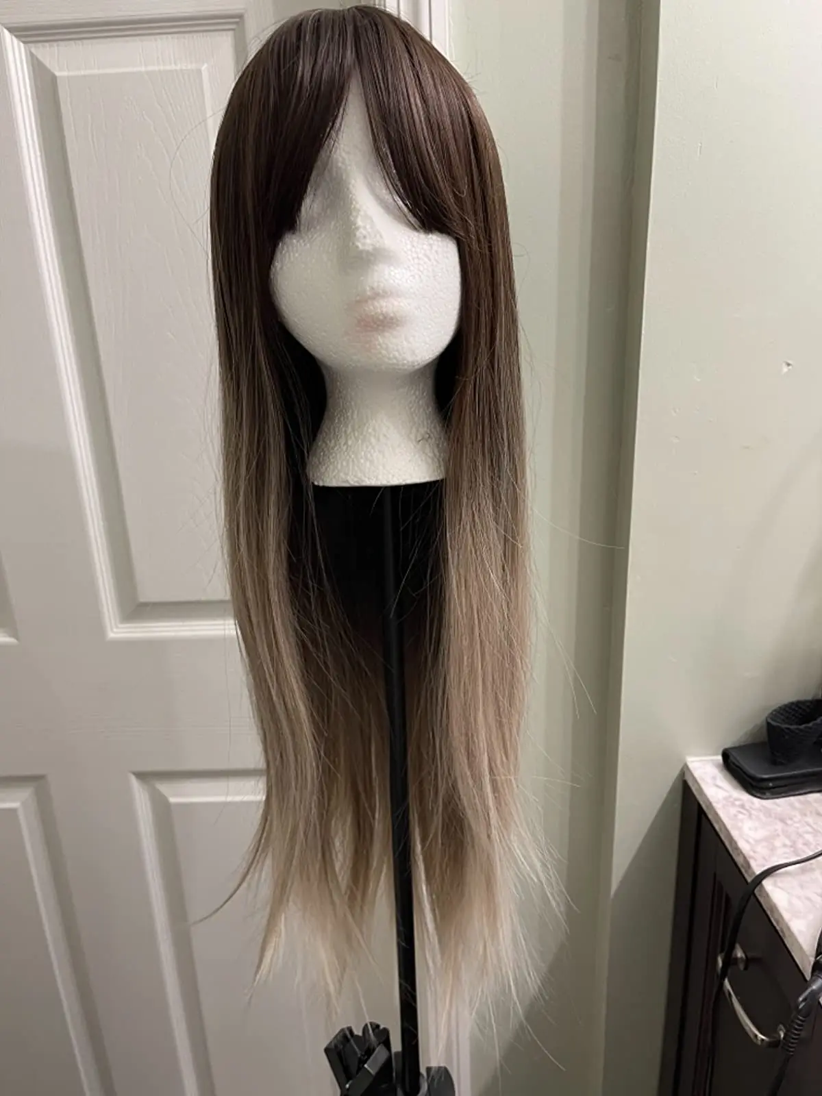 Женские Длинные прямые синтетические парики с челкой, с эффектом омбре
