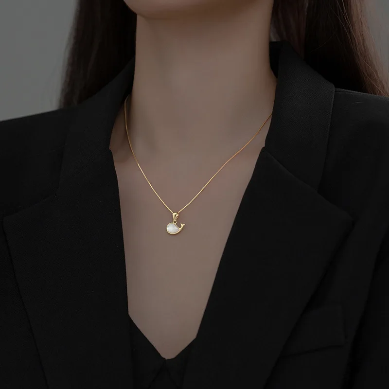 Женское ожерелье с подвеской в виде дельфина из серебра 925 пробы