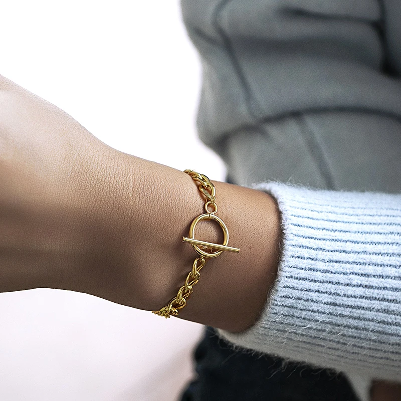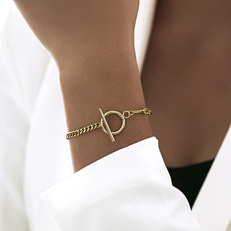 Новинка 2021, модный браслет-цепочка из кубинской стали, женский браслет-цепочка Королевского золотого цвета с переключателем и застежкой из нержавеющей стали, Подарочная бижутерия для женщин