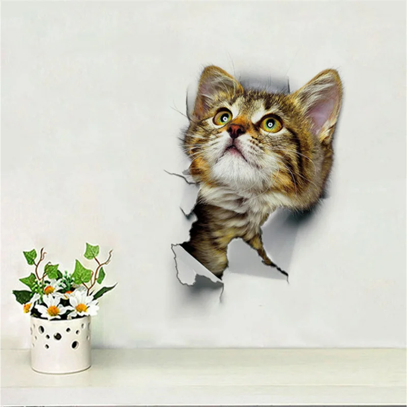 Яркая 3D наклейка на стену в виде кошки, переключатель ярких цветов, декоративные наклейки, забавные животные, декоративные наклейки, плакат, роспись из ПВХ, искусство сделай сам