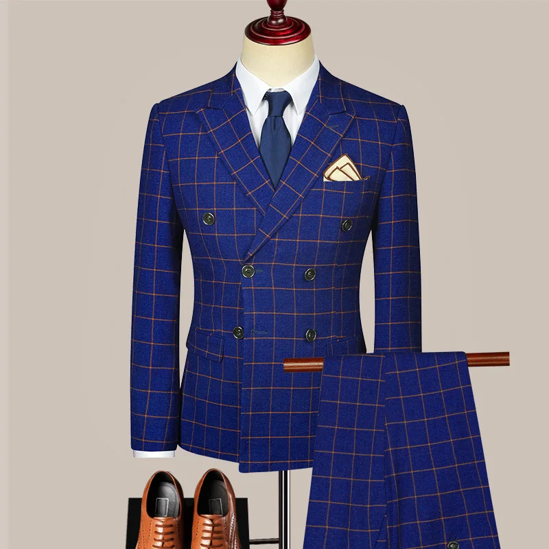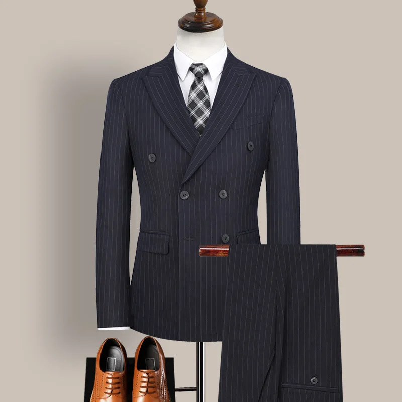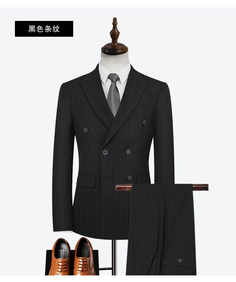 Пиджак и брюки мужские в полоску, Модный повседневный деловой костюм, двубортный костюм для жениха, свадьбы, брюки, комплект из 2 предметов