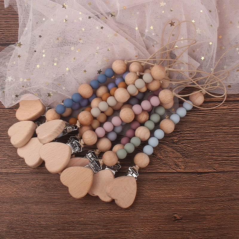 Цепочка-прорезыватель для соски с сердечком, из дерева и силикона, ...