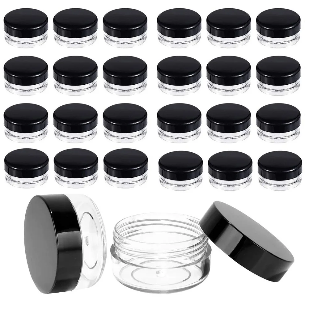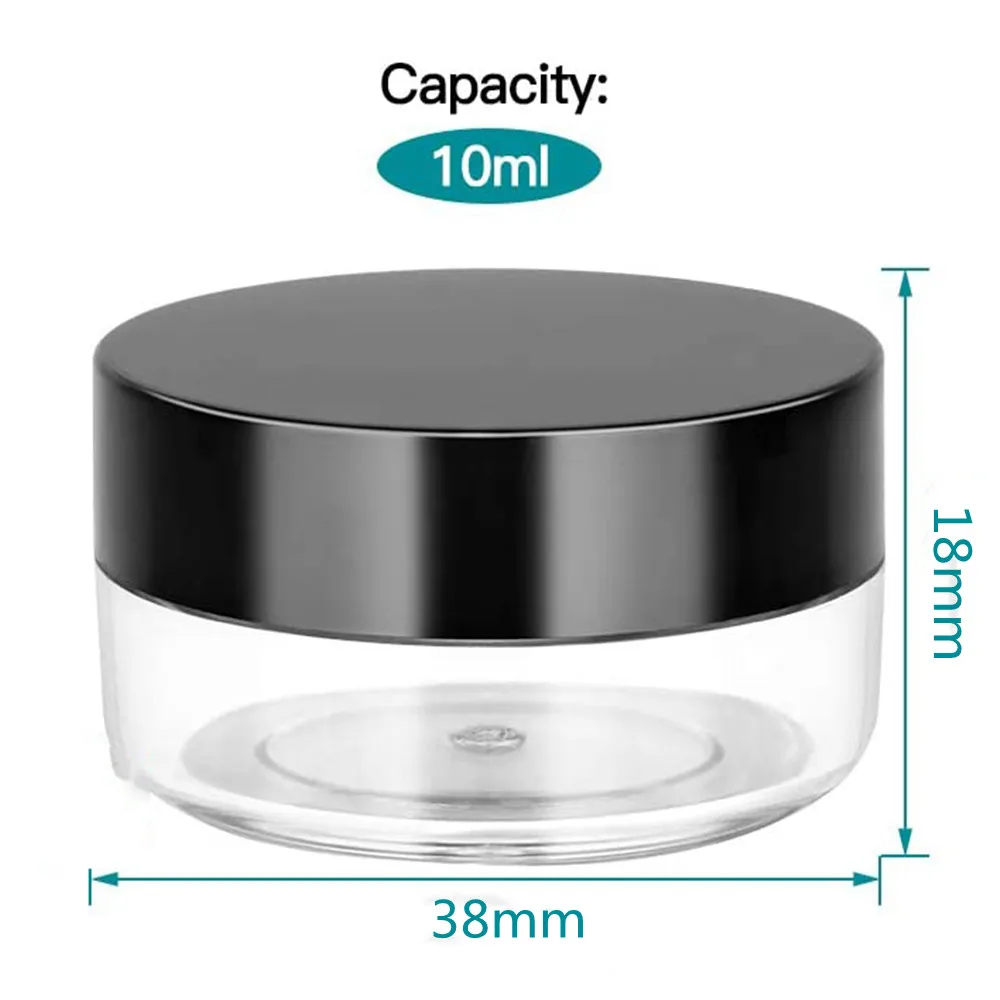 50 шт. 10 мл прозрачные пластиковые круглые банки с черной крышкой с широкой горловиной контейнеры для хранения косметики для косметических продуктов, крема, скрабы