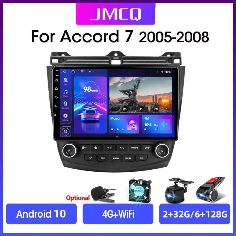 Автомагнитола JMCQ, 2DIN, Android 10, 4G + WiFi, DSP, CarPlay, мультимедийный видеоплеер для Honda Accord 7 2005-2008, GPS-навигация