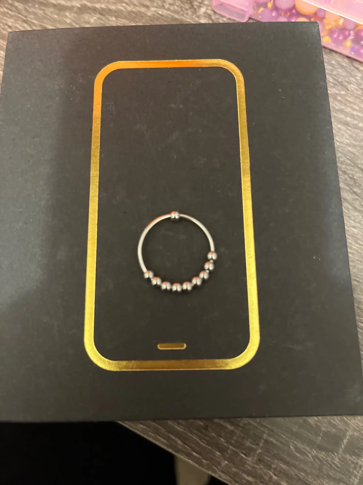 Очень нравится это кольцо. Очень изящный, очень милый. Мне нравится, как бусины кружятся вокруг пальца. Одна бусина не входит в комплект. Но с тех пор почему. Это помогает вам продолжать крутить бусины. Я настоятельно рекомендую. Обязательно буду заказывать больше. Супер быстрая доставка!