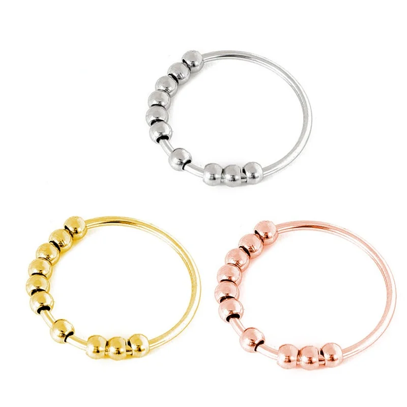 Антистрессовое кольцо, тревожное кольцо, модное кольцо из нержавеющей стали с бусинами, кольцо-антистресс, свободно вращающееся кольцо-Спиннер, игрушка для девушек и женщин