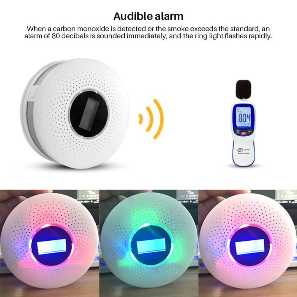 Умный детектор дыма, датчик угарного газа, сигнализация 85 дБ, сирена, датчик пожарного дыма, Автономная противопожарная защита, домашняя охранная сигнализация