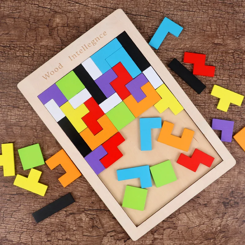Деревянный тетрис танграмма, интеллектуальный пазл, Детская развива...