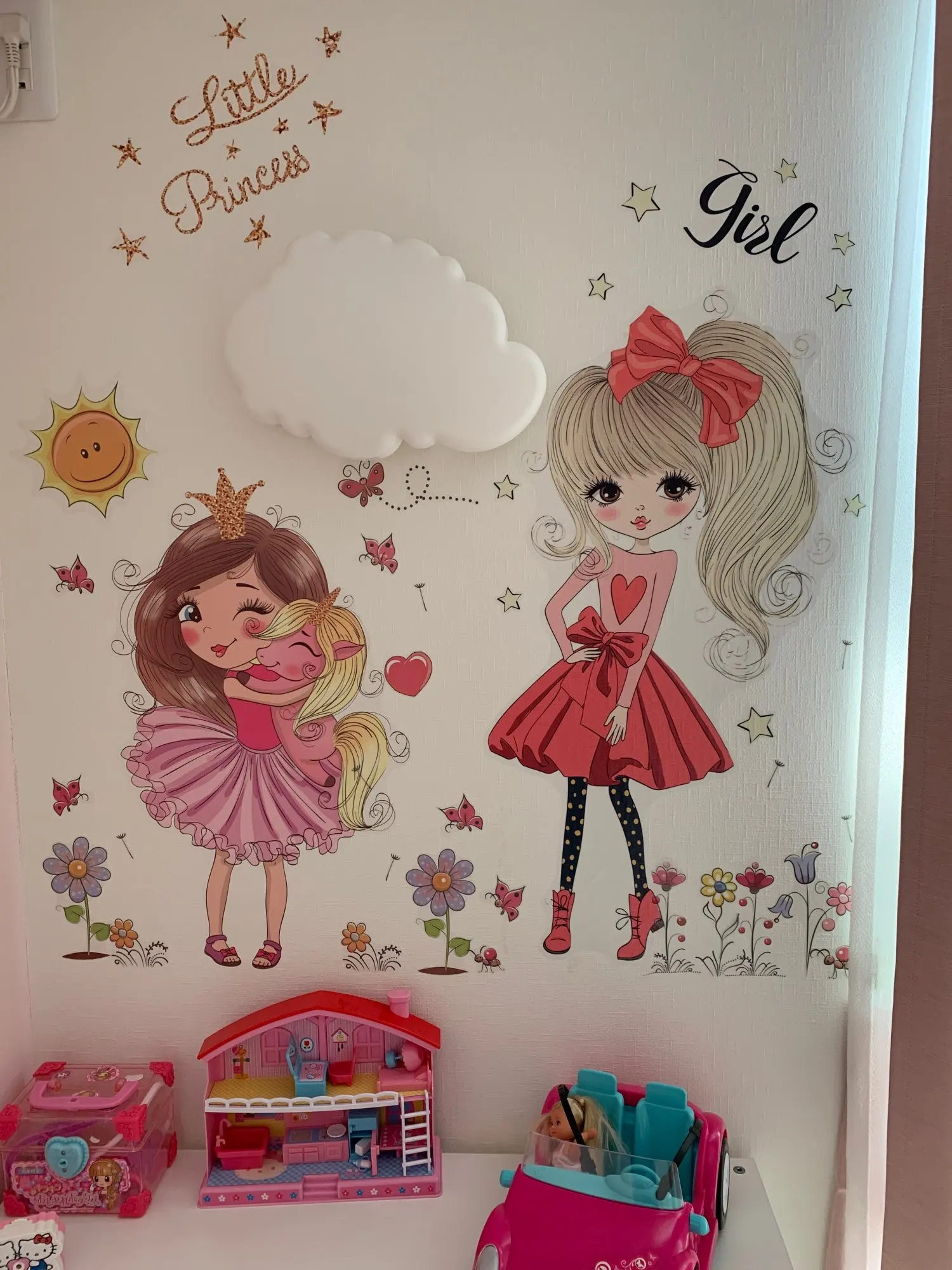 Наклейки на стену с мультяшным медведем и принцессой для девочек, комнат, спальни, декоративные виниловые наклейки на стену для детской комнаты