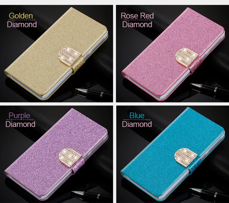 FeatureLuxury Flip Magnet PU Leather Shiny Glitter Case