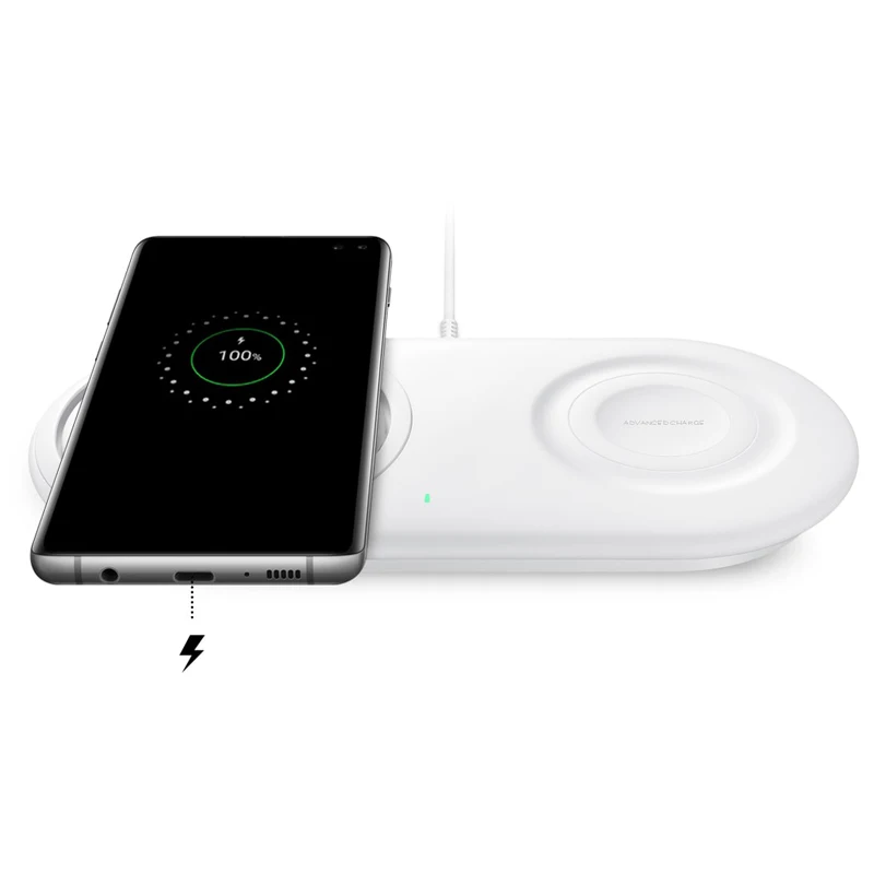 Заряжайте часы Galaxy S10e, S10 или S10 + и Samsung Galaxy Watch Active. Или зарядить друга. Двойная Беспроводная Зарядная база имеет две различные области зарядки из-за