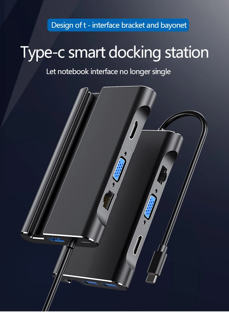 Док-станция с разъемом USB Type-c, док-станция с USB 3,0, VGA, RJ45, PD, для ноутбуков, Macbook Pro, HP, Surface, DELL, Lenovo, Samsung, dex
