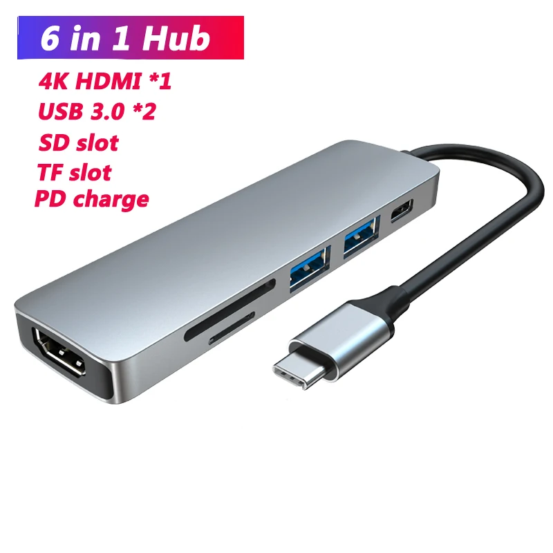 6 в 1 с PD:1 x HD порт, поддержка порта 4k * 2k разрешение 2 x USB 3.0 портов s 5 ГБ/сек. данных speed.1 x порт питания 60W.1 x sd-карта Slot1 x tf-карта
