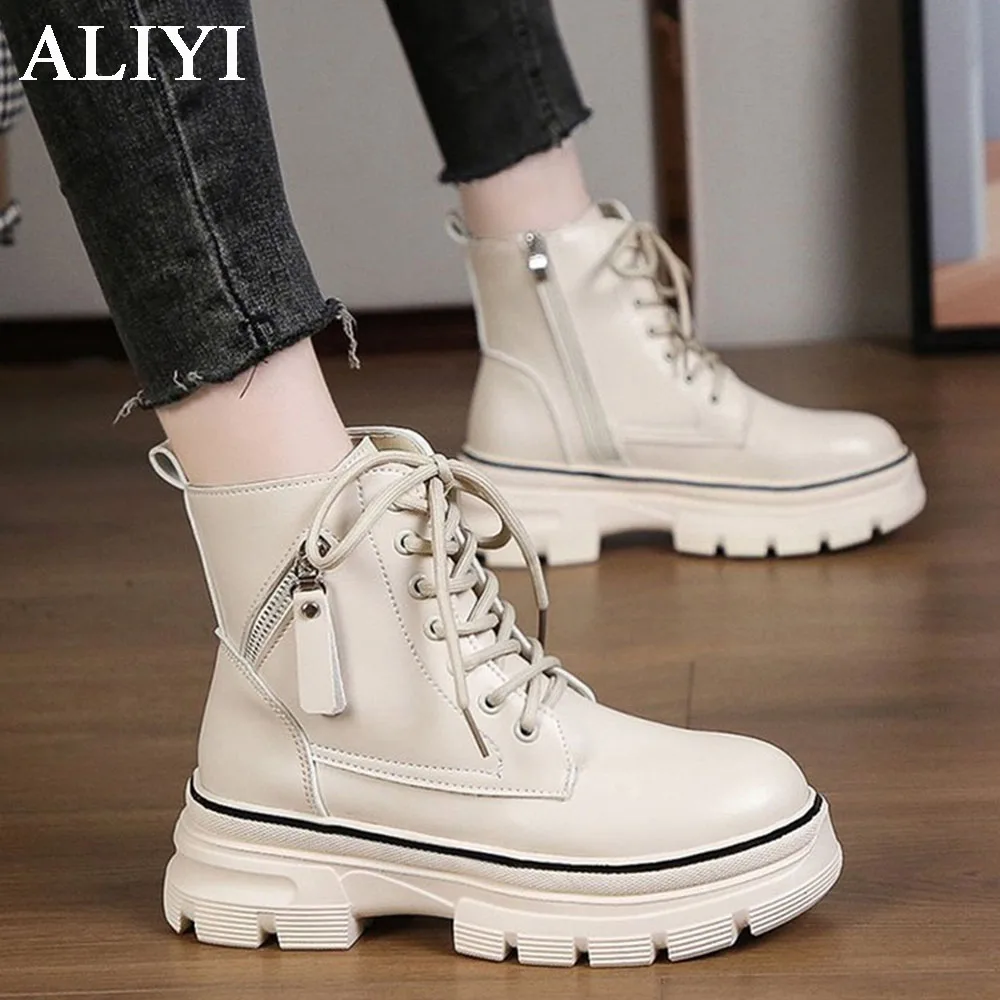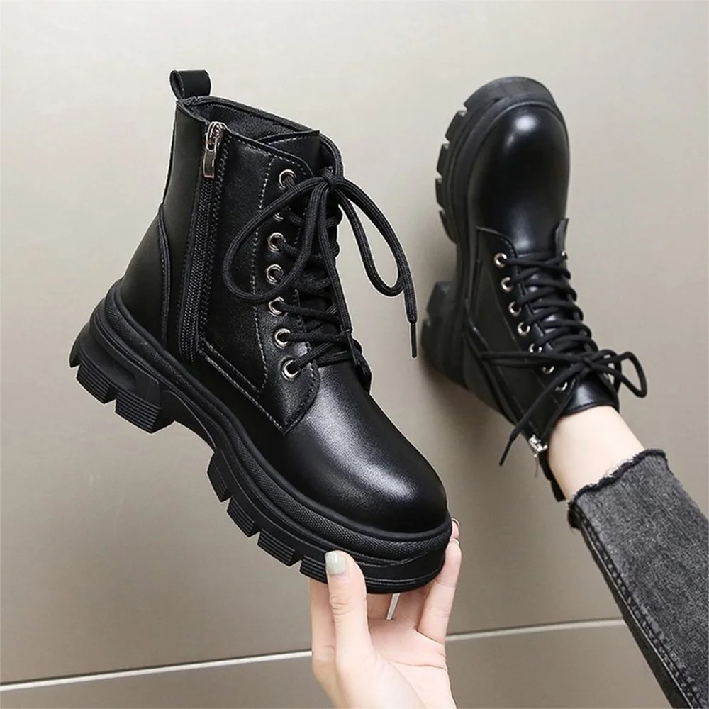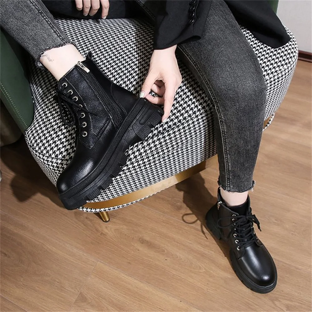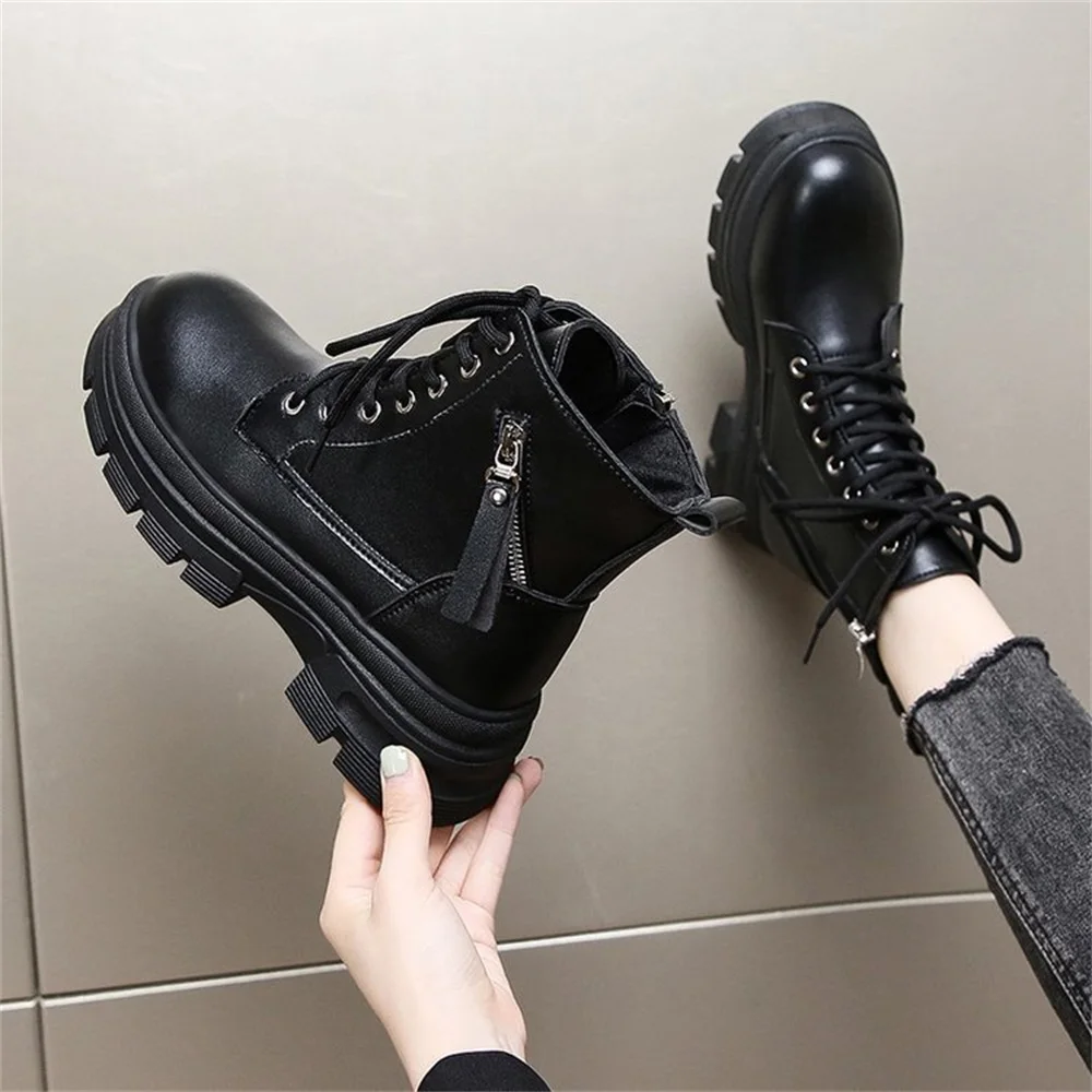 Женские Классические Ботильоны на молнии, ботинки в британском стиле на платформе с круглым носком, Размеры 35-40, осень 2021