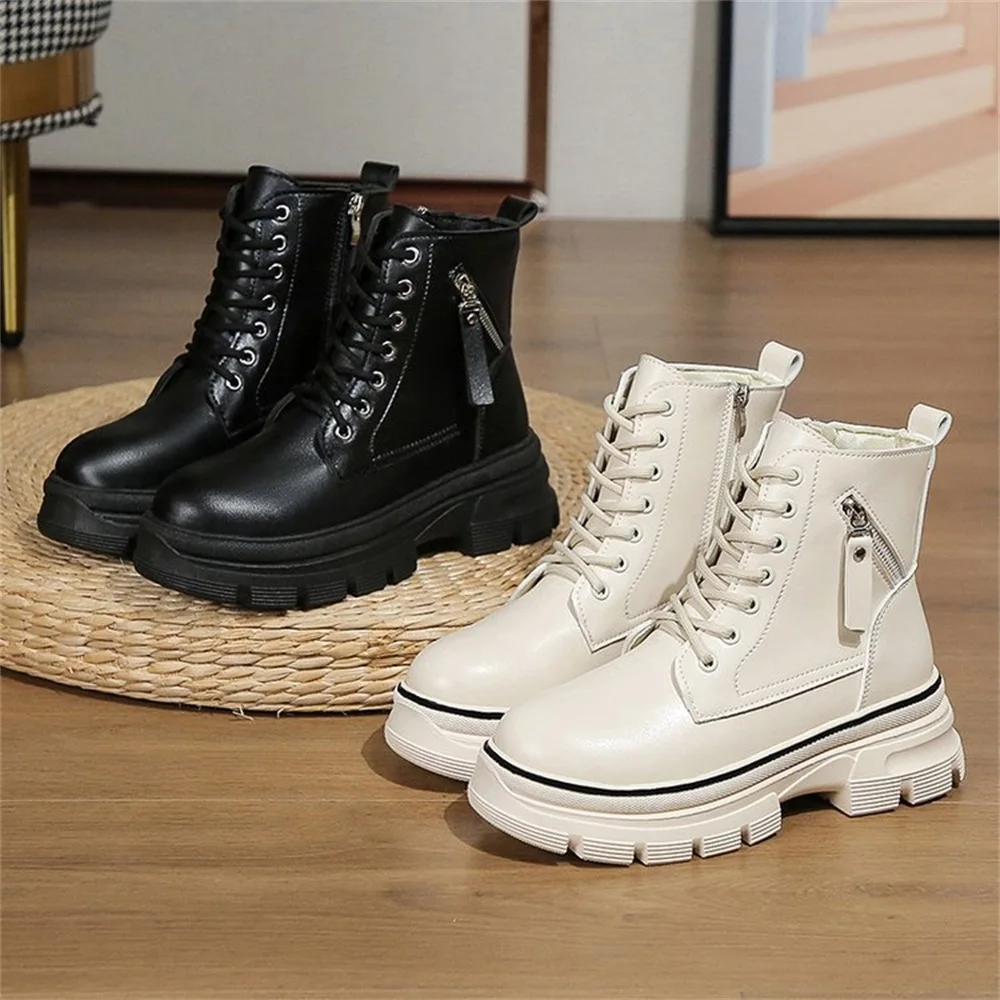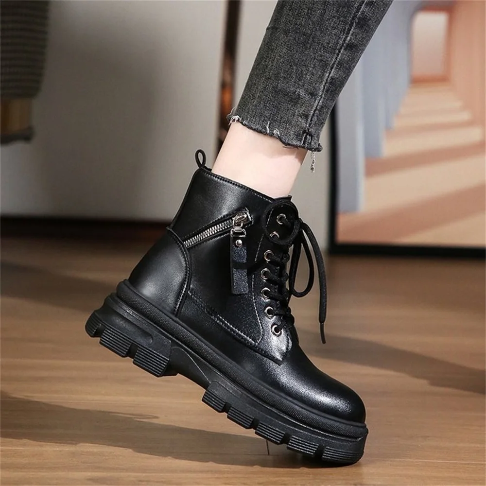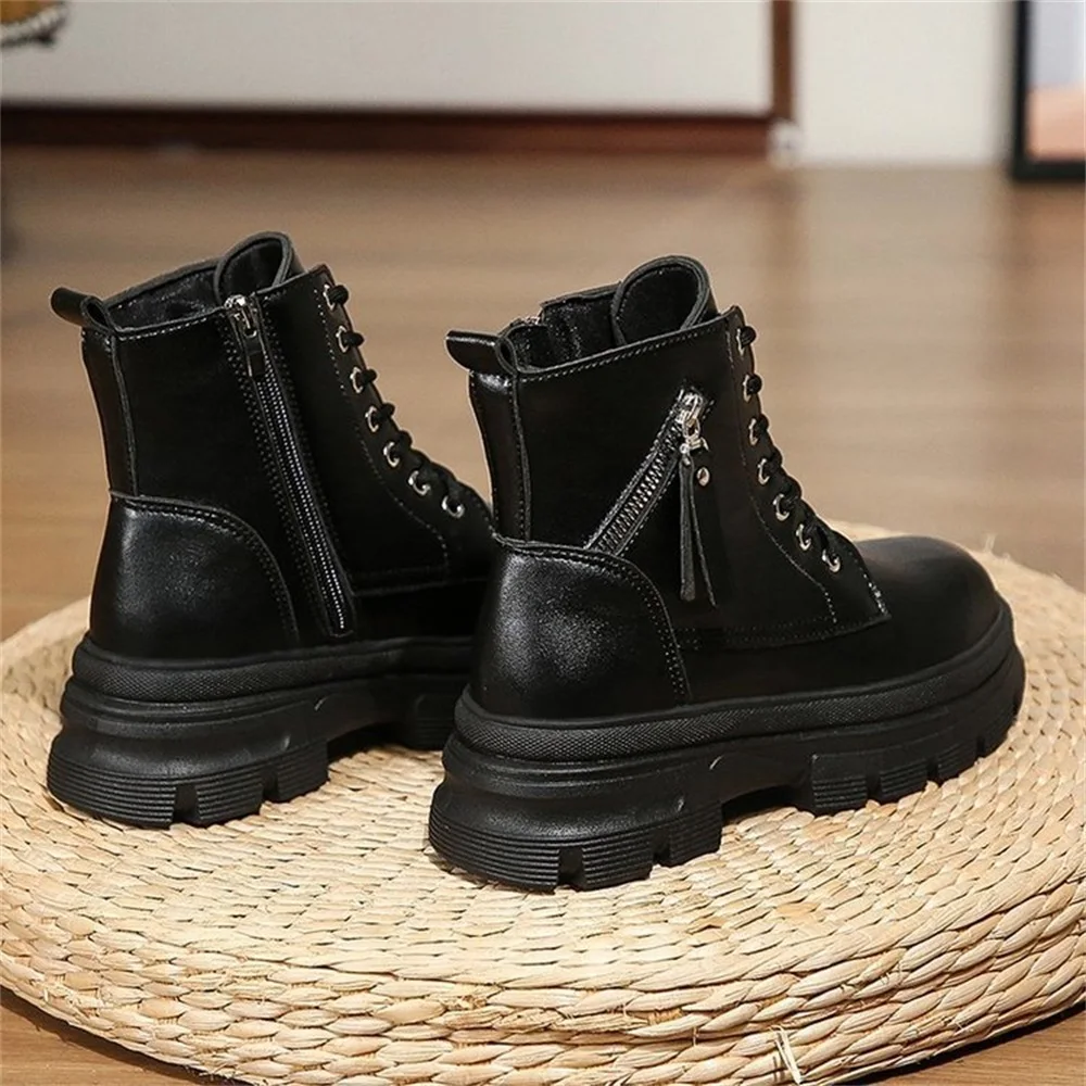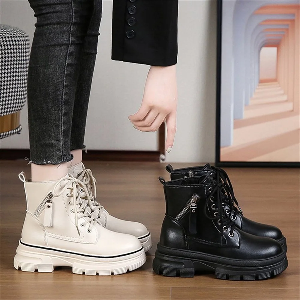 Женские Классические Ботильоны на молнии, ботинки в британском стиле на платформе с круглым носком, Размеры 35-40, осень 2021