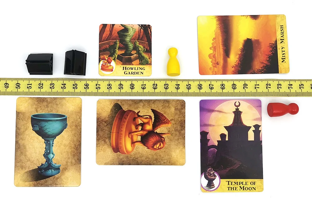 58 игральных карт + 24 плитки острова + 6 пешек + 4 фигурки сокровищ + 1 маркер уровня воды + 1 счетчик воды + Инструкция + черная коробка