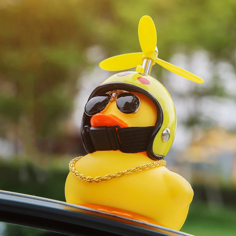 Резиновая утка, игрушечные украшения для автомобиля, желтая утка, украшения для приборной панели автомобиля, крутая утка для очков с пропеллером, шлем