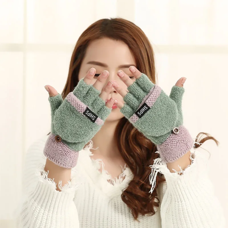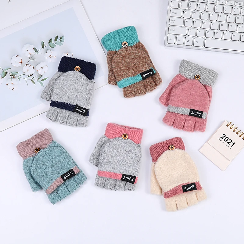 Женские вязаные теплые перчатки с откидной крышкой, перчатки с открытыми пальцами для девушек, зимние теплые термоперчатки без пальцев, спортивные уличные рукавицы