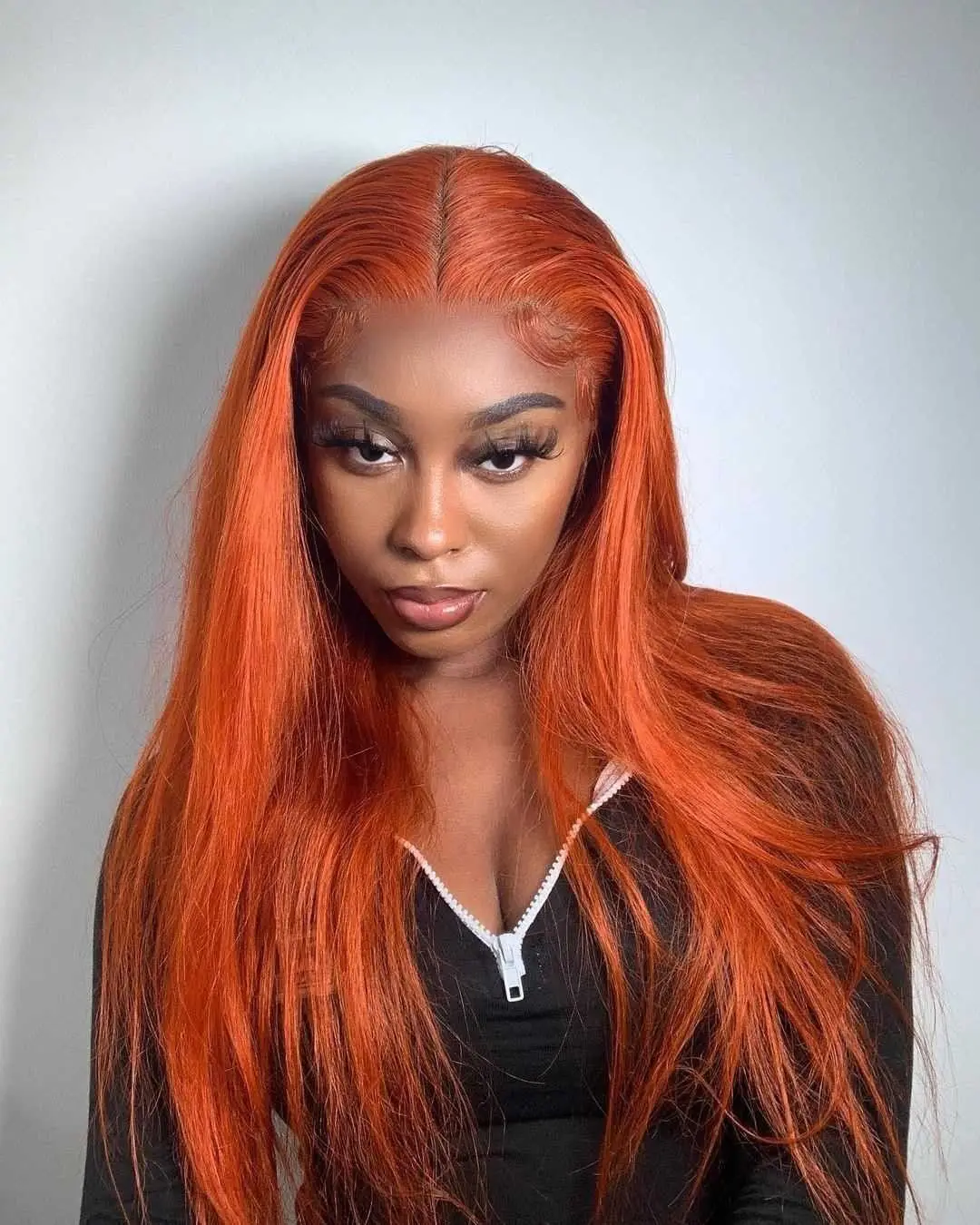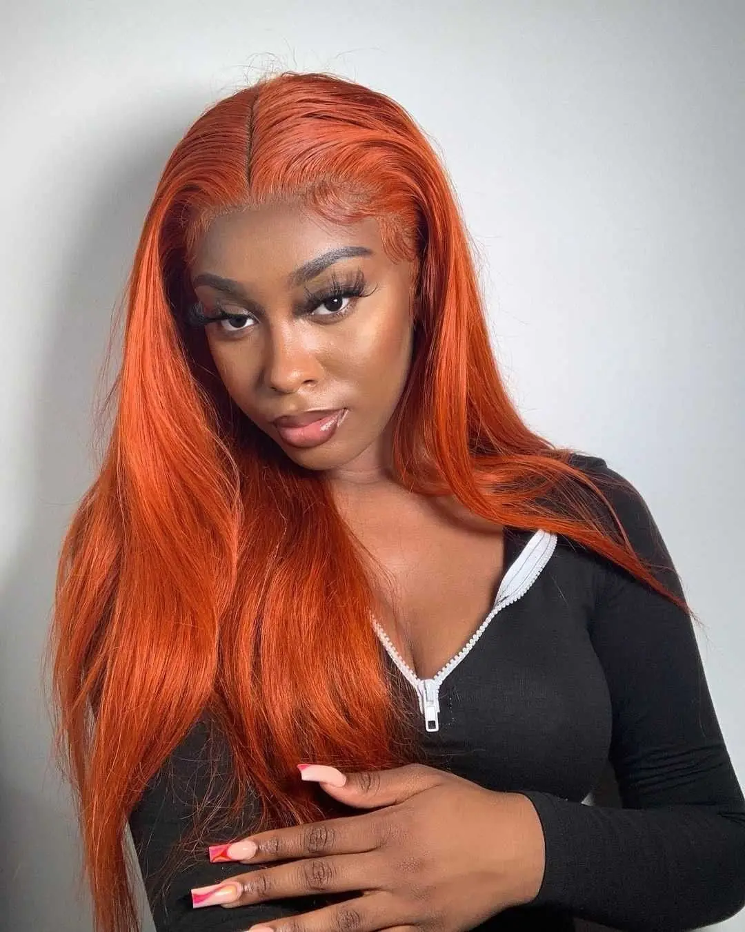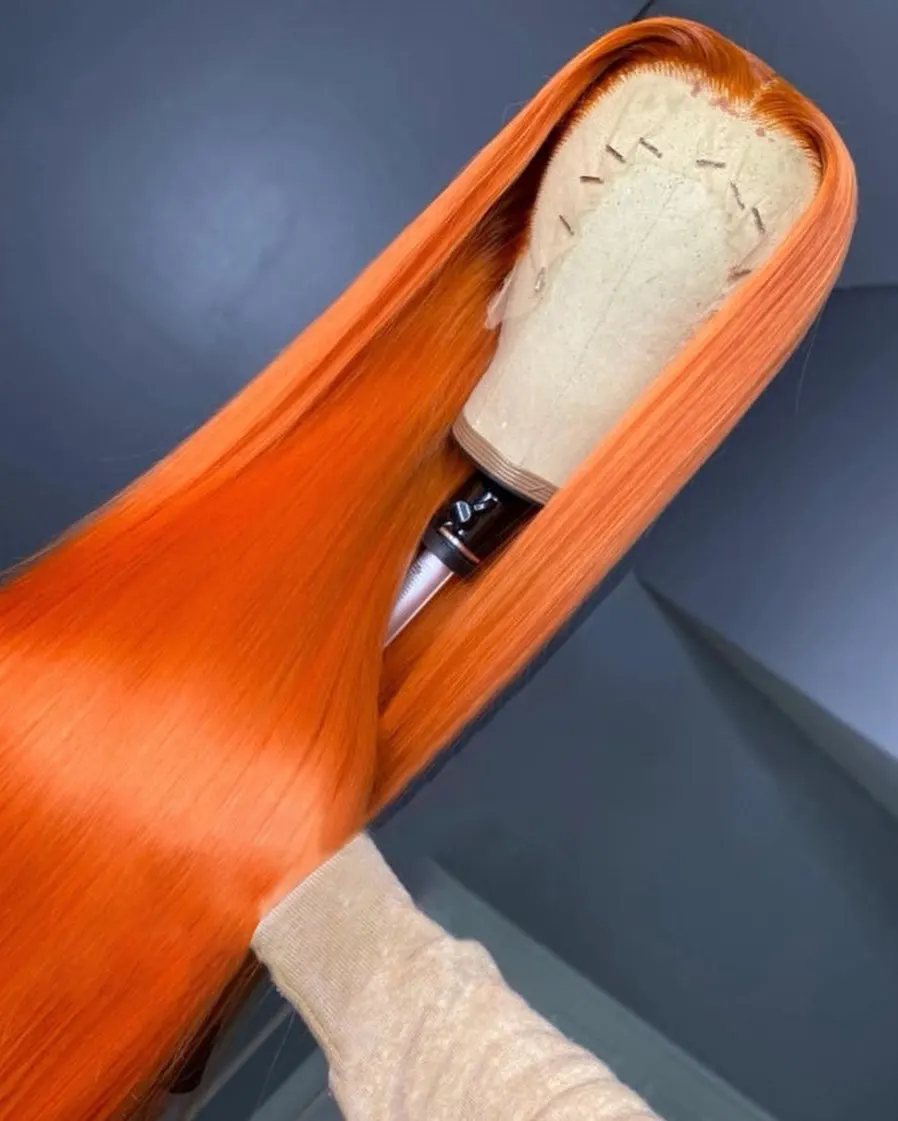 Парики апельсиновый имбирный цвет 13x4 на сетке спереди, волнистые прямые волнистые человеческие волосы, парики для женщин, 180% плотность, парики без повреждений на сетке спереди