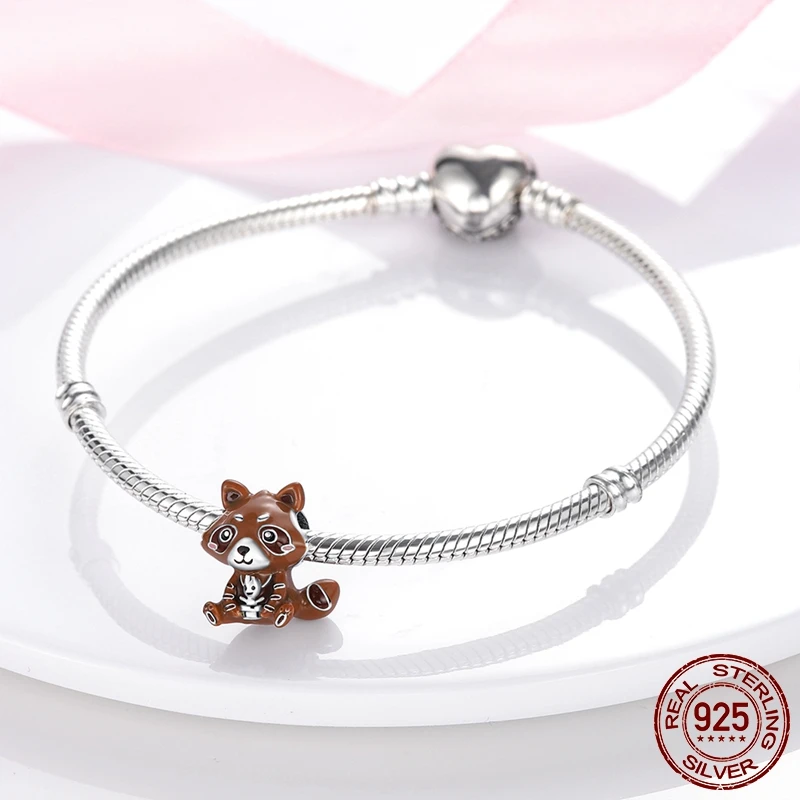 Браслет Pandora из серебра 925 пробы с подвеской в виде ракеты енота