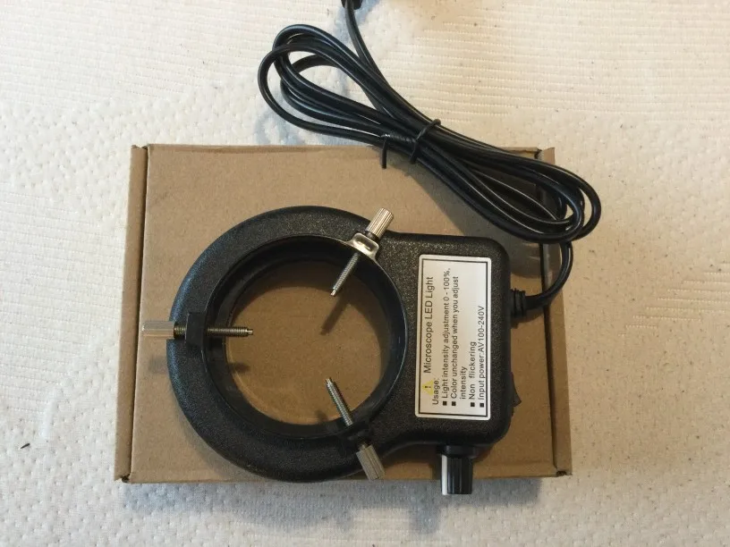 Светодиодный кольцевой светильник с регулируемым микроскопом 100-240 В переменного тока, светильник с регулировкой интенсивности 0-100% светодиодный круглый светильник для тринокулярного стереозонового микроскопа, AV 100-240 в источник питания специальный светодиодный кольцевой светильник микроскопа.