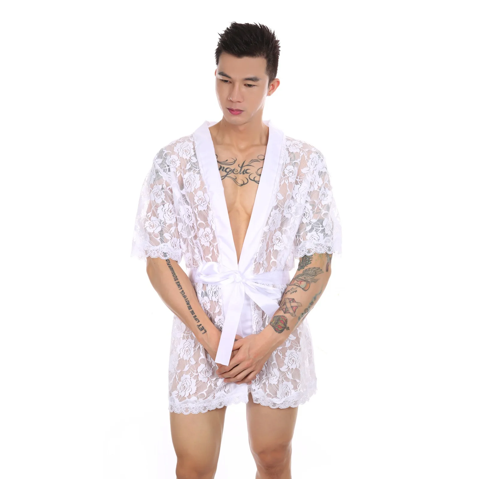 Новинка, мужской супер сексуальный кружевной прозрачный банный халат, домашний костюм, прозрачная Соблазнительная Пижама