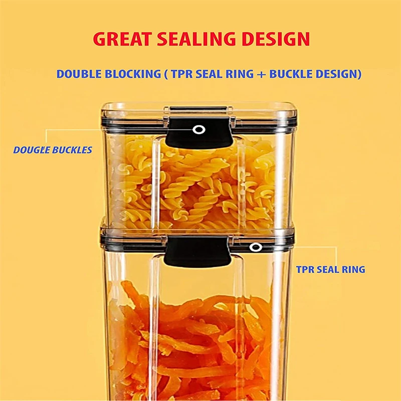 Герметично держать еду сухой и свежей ---- со специальным механизмом запечатывания, вы можете безопасно открыть или закрыть наши пластиковые контейнеры двумя пальцами. Просто откройте кольцо или переверните кольцо вниз, чтобы зафиксировать и запечатать.