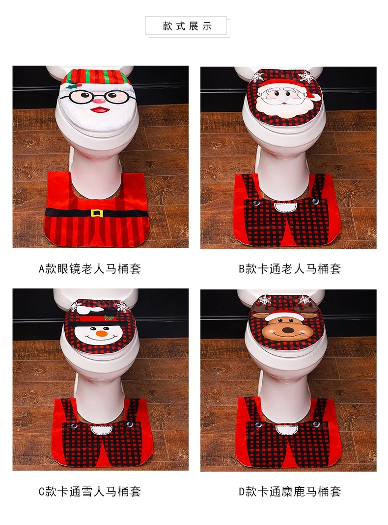 Набор рождественских ковриков для ванной комнаты, нескользящий коврик с Санта-Клаусом, коврик для унитаза, водонепроницаемая занавеска для душа, рождественские украшения для дома