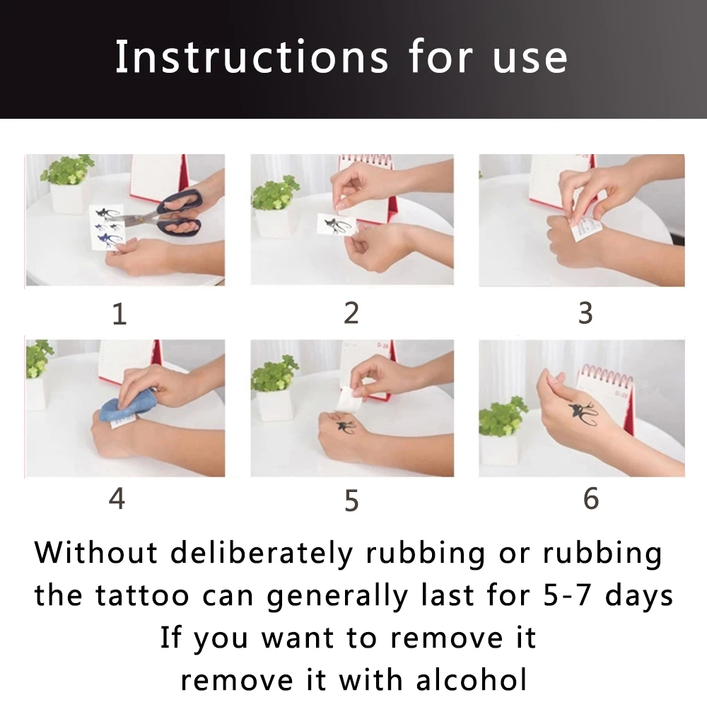 EAUDEVA надежный бренд красотыЕсли вам нравится наш магазинПожалуйста, нажмите «Далее» и добавьте наш магазин в ваши любимые магазины,Затем вы можете получить нашу информацию о новом прибытии и скидках вовремя,Приветствуем дропшиппинг и оптовую продажу! Как использовать:1. Вырежьте татуировку на выбор и снимите прозрачный лист(Перед использованием тщательно очистите и высушите кожу)2. Намочите заднюю часть татуировки губкой или влажной тканью через 20 - 30 секунд,Аккуратно снимите подложкуЭто оставит татуировку на вашей коже Как удалить: 1. Татуировка с помощью натирающего спирта или детского масла. Подождите около 10 секунд, затем аккуратно протрите 2. Используйте больше масла для младенца, пока вся татуировка не будет удалена