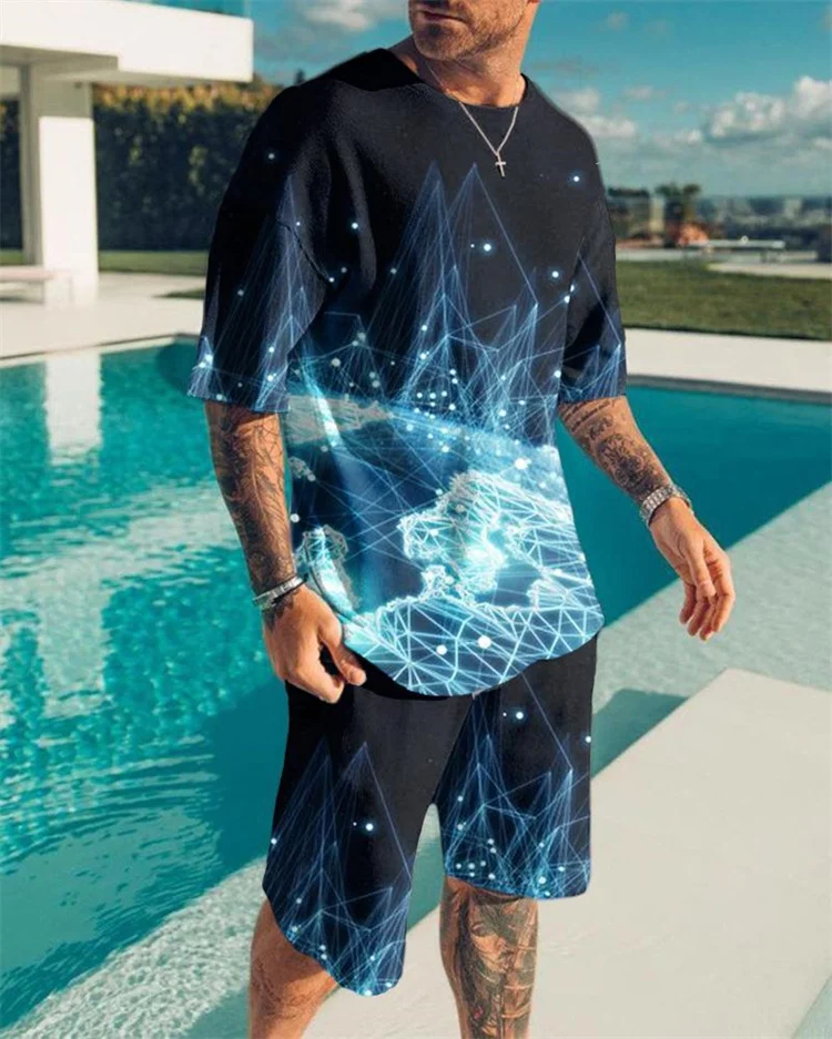 Футболка и шорты мужские с круглым вырезом, модная трёхмерная спортивная одежда, уличная одежда в стиле хип-хоп, рубашка с коротким рукавом, лето