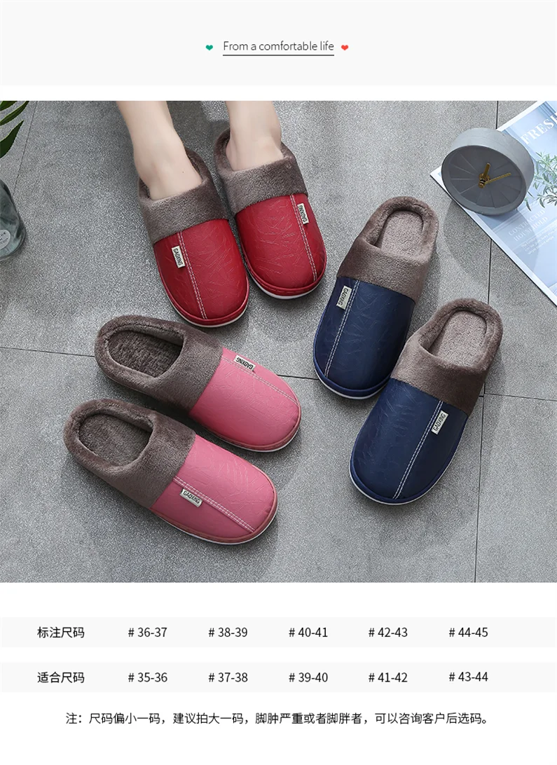 Зимние мужские плюшевые тапочки, водонепроницаемые домашние теплые ...