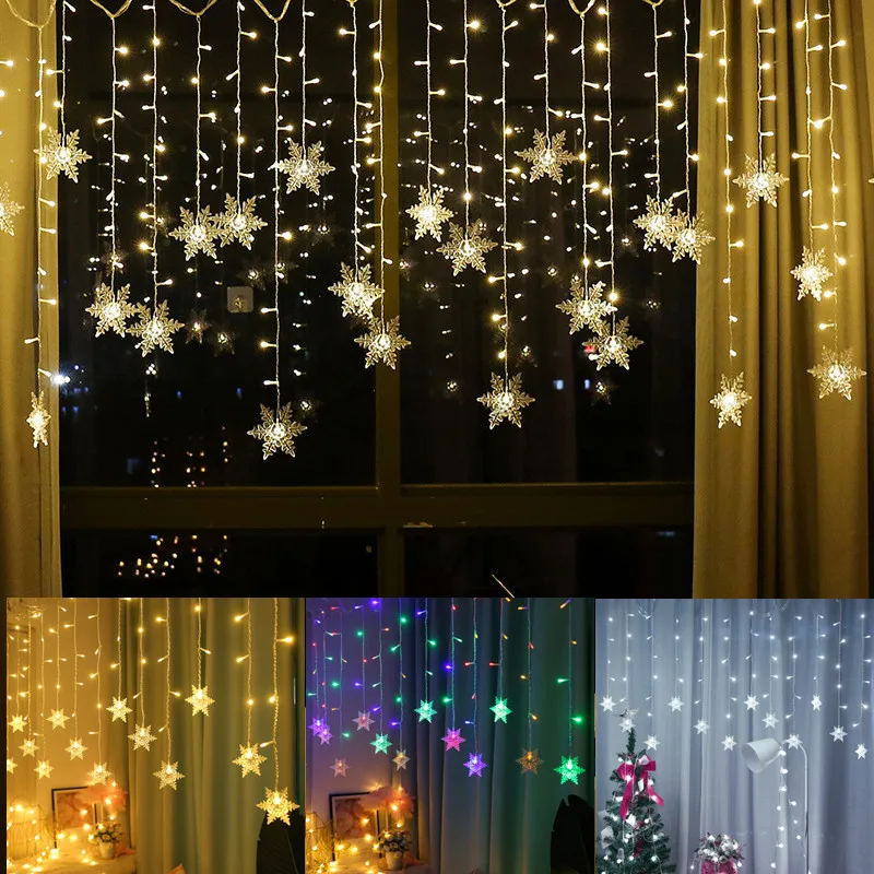 Рождественская декоративная гирлянсветильник-занавеска в виде снежи...