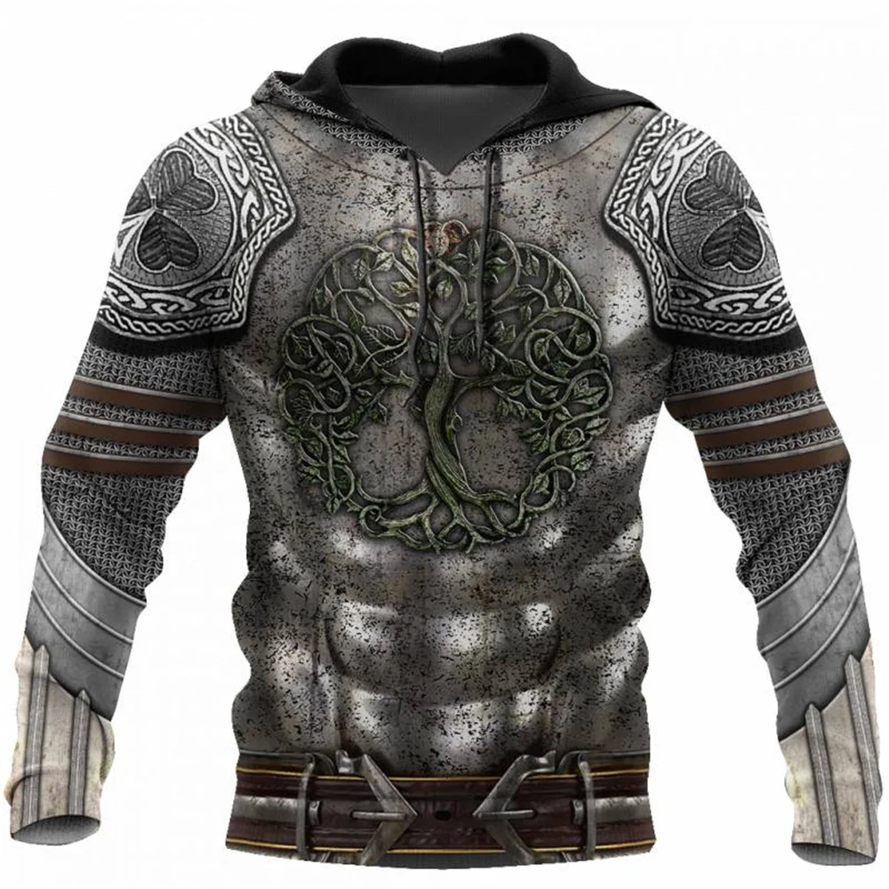 Толстовка мужская с 3D-принтом армированный воин викингов, уличный Модный повседневный удобный Свободный Топ, большие размеры 4XL, весна-осень