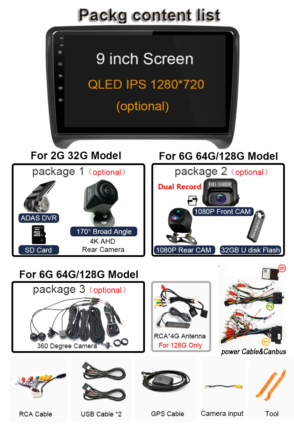 RAM+ROM:2G+32G / 6G+64G/ 6G/8G+128G (Optional)