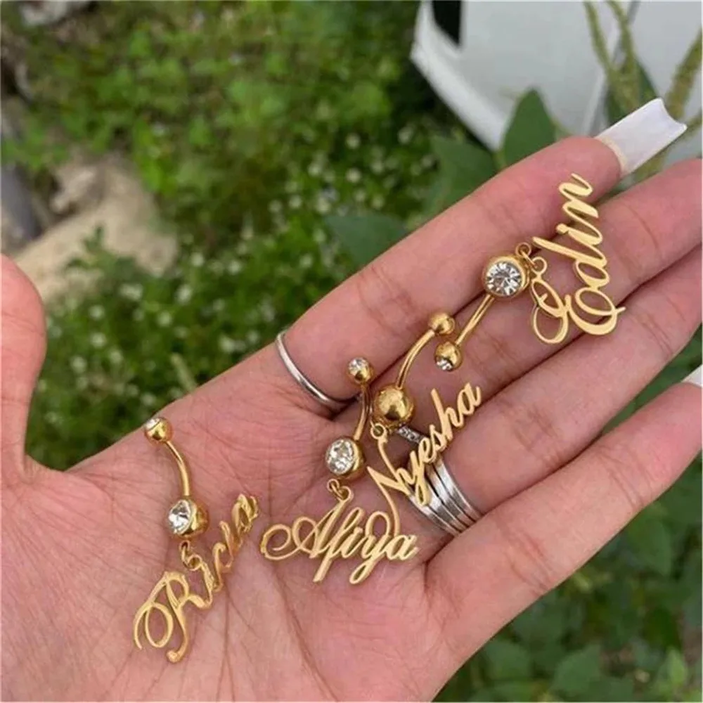 Название: пользовательское кольцо для живота с именным покрытием для женщин персонализирует кольцо из циркония с пуговицами для живота на заказ ювелирные изделия из нержавеющей стали Рождественский подарок