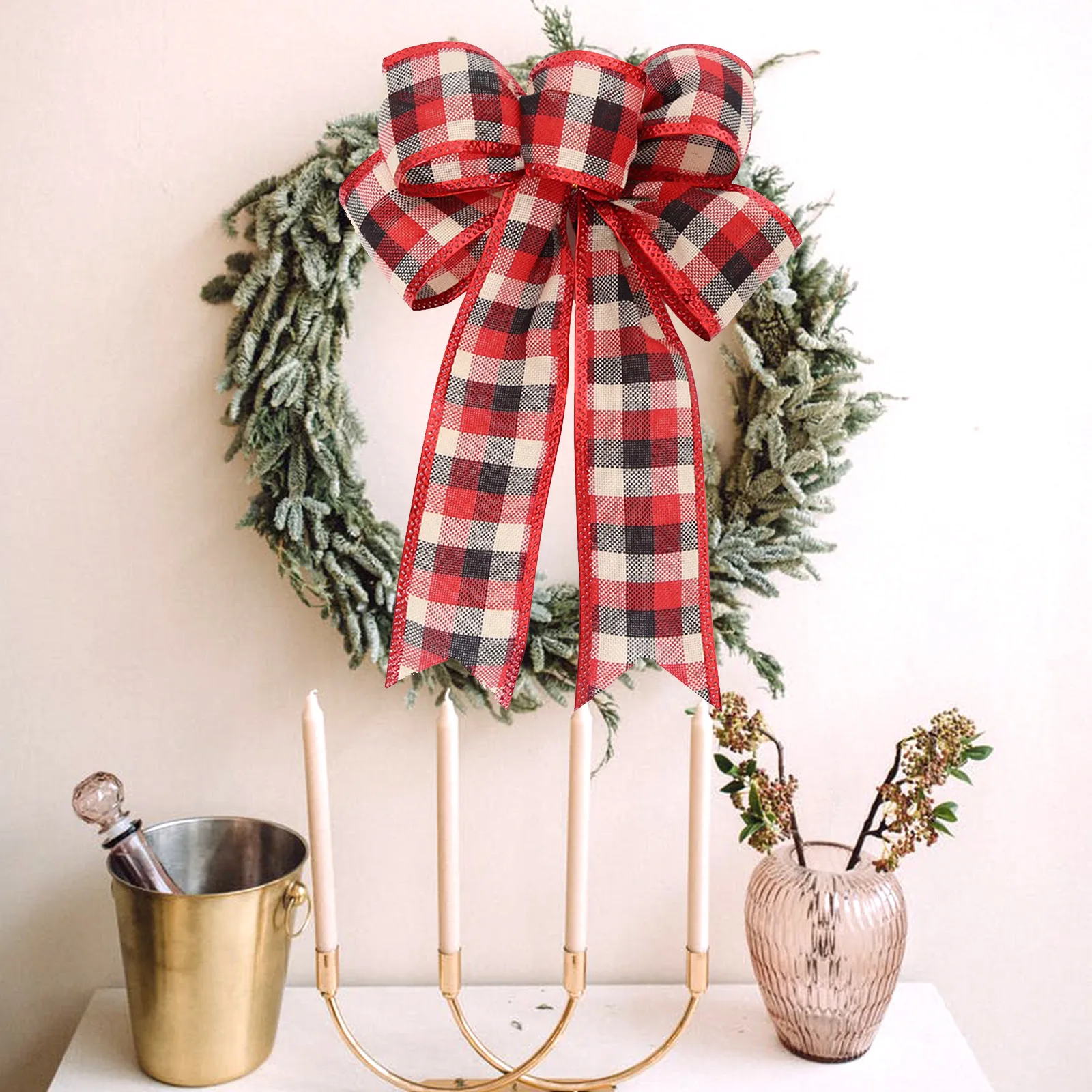 Банты для елки из красного хлопка, льняные украшения с венком, бант...