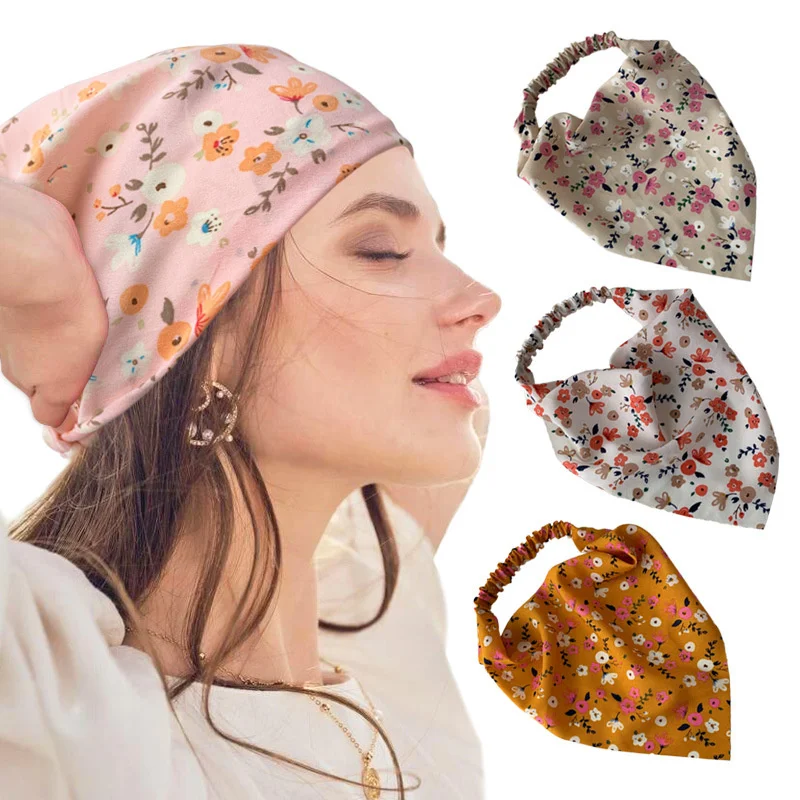 Популярные женские эластичные повязки для волос с цветочным принтом, повязка на голову, треугольные банданы для взрослых, головные уборы, аксессуары для волос