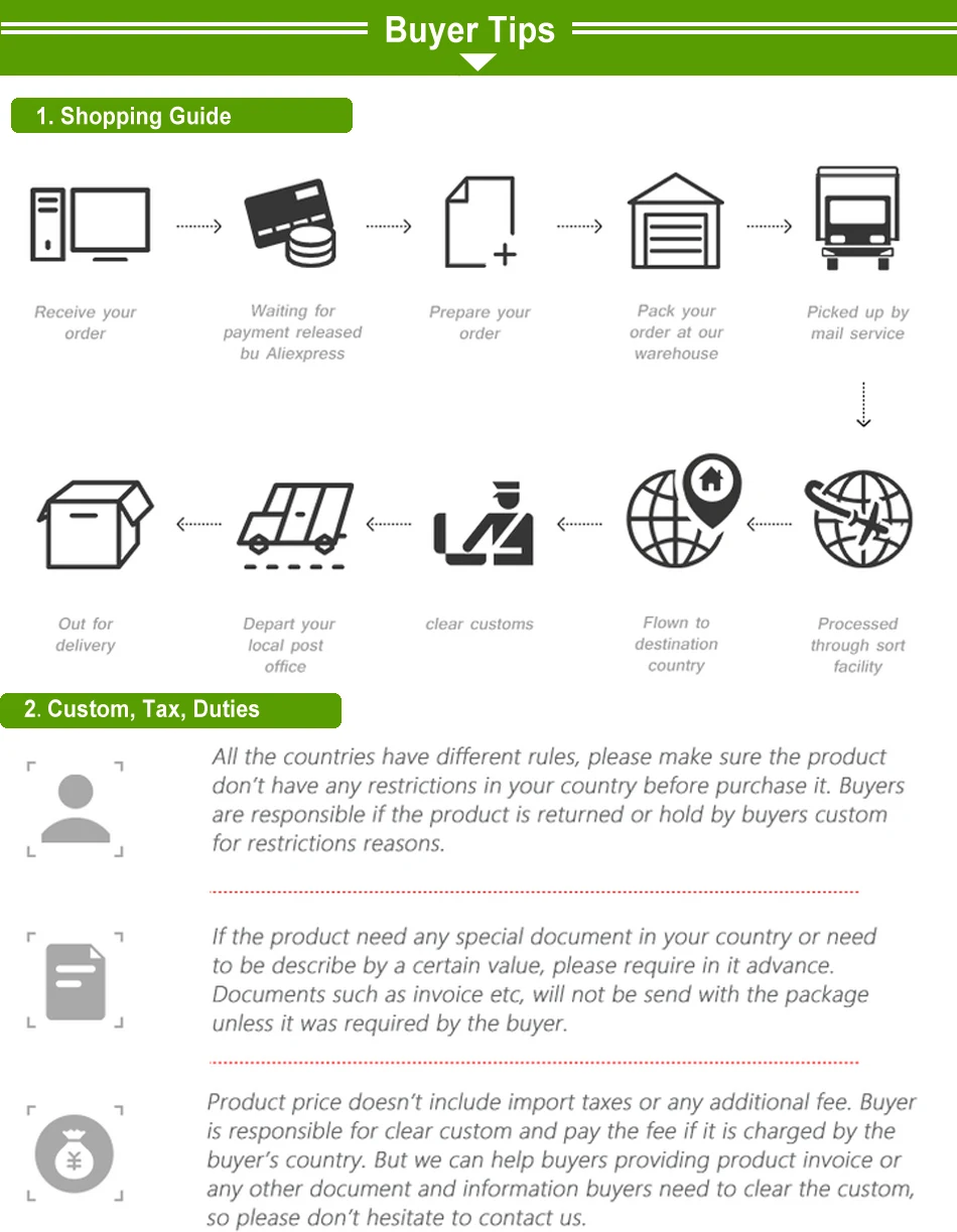 Мы гарантируем:Товар, который вы получите, будет таким же оригинальным, как и его описание.Мы принимаем все доступные меры, чтобы ваша сделка была безопасной и безопасной.Доставка:1. Все заказы отправляются в течение 3-5 рабочих дней с момента получения оплаты.2. Стандартная доставка Почта Китая и EMS. Для тех, кто нуждается в других условиях доставки, пожалуйста, свяжитесь с нами для вашего предпочтительного способа доставки.3. Пожалуйста, обратите внимание, что в связи с тяжелой погодой, таможенным оформлением, праздниками и огромным сезоном покупок, может потребоваться дополнительное время доставки. Мы заранее благодарим вас за ваше терпение.Оплата:1. Мы принимаем alipay здесь.2. Все основные кредитные карты принимаются через безопасный платежный процессор ESCROW.Политика Возврата:1. Мы стремимся обеспечить 100% удовлетворение каждого из наших клиентов. Если ваш товар не такой, как вы хотели, просто отправьте его обратно к нам, и мы вернем или заменим ваш товар.2. Поскольку мы предлагаем бесплатную доставку многих товаров, покупатель несет ответственность за стоимость обратной доставки в большинстве случаев. Свяжитесь с нами, если у вас есть какие-либо вопросы.3. Обратите внимание, что товары должны быть полностью нетронутыми, со всеми оригинальными частями и упаковкой, чтобы иметь право на возврат или замену.Отзывы:1. Когда вы получаете товар и удовлетворены товаром, пожалуйста, оставьте положительные отзывы (пять звезд).2. Если по какой-либо причине вы не удовлетворены своей покупкой, пожалуйста, свяжитесь с нами, и мы сделаем все возможное, чтобы решить эту проблему. Пожалуйста, не оставляйте нейтральные или негативные отзывы без каких-либо сообщений.ФлуоресцентныйФлуоресцентныйБесплатная доставка по всему миру для всех заказов авиапочтой Китая Заказы будут отправлены в течение 48 часов после подтверждения оплаты Ссылка для отслеживания заказа: www.17track.net/en