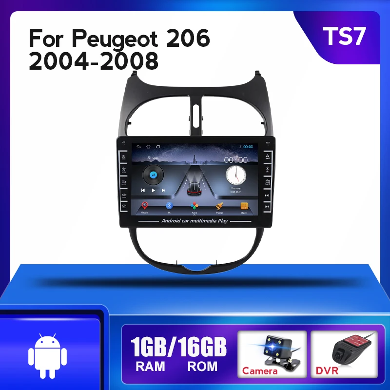 Автомагнитола на Android, 4 ядра, IPS для Peugeot 206 2004 -2008, автомобильное радио, мультимедийный видеоплеер, навигация GPS, 2 din, DVD, Wi-Fi, BT, Dvr, FM