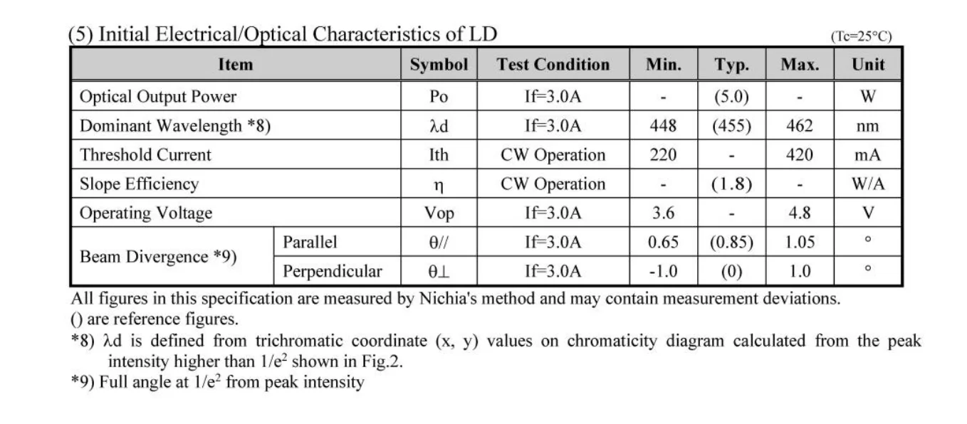 NICHIA NUBM0E переработанный 9 мм синий 5,5 нм 6,5 Вт-Вт лазерный ...