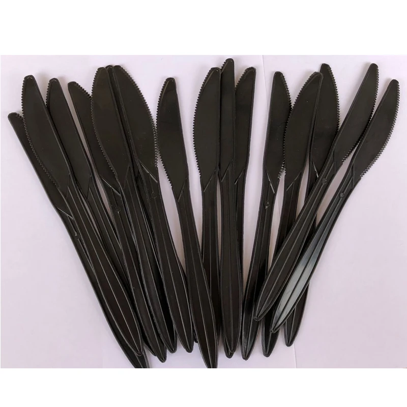 16 шт. в упаковке, черная пластиковая посуда, одноразовый нож, това...