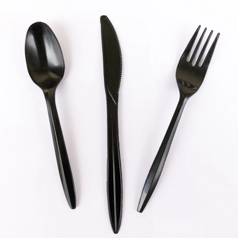 Черные пластиковые столовые приборы из ПП, 16 шт., нож, ложка, вилк...